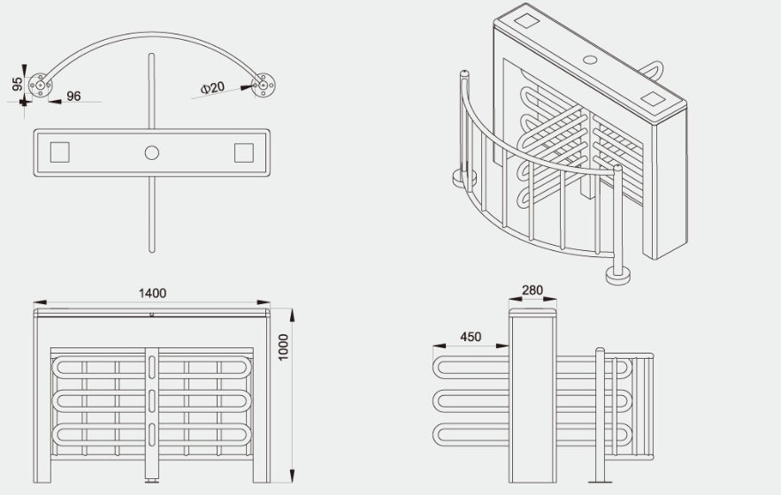 Suitable for one-way or two-way control of the flow of people in and out of the way.